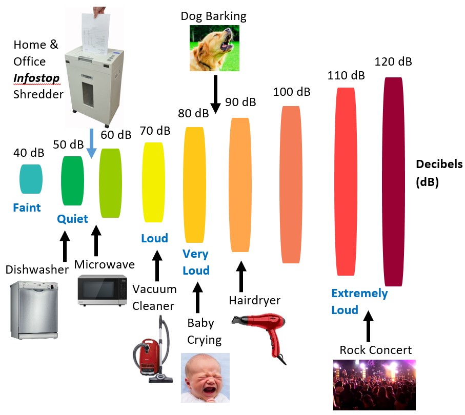 Modern paper shredders are designed with noise reduction in mind. In fact, most INFOSTOP home and office paper shredders operate at less than 55 dB. That puts them below the average noise level of everyday household and office equipment, making them surprisingly quiet during operation.